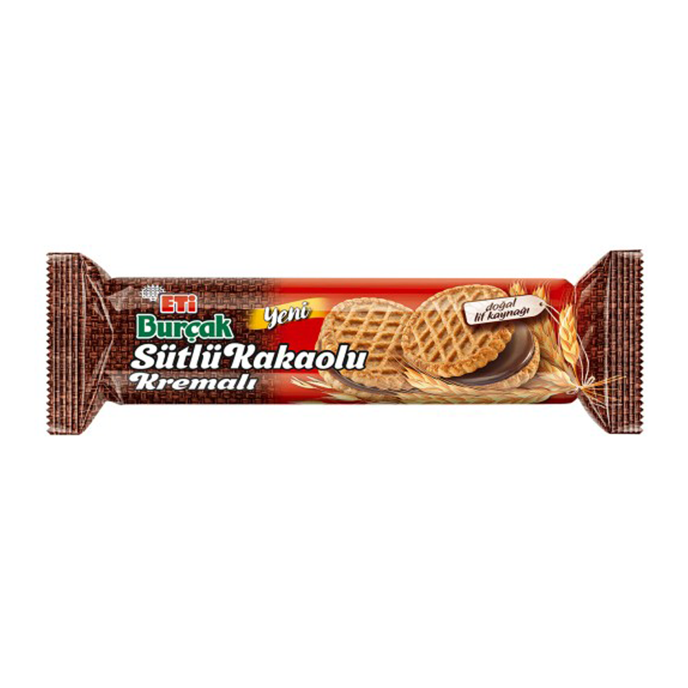 Eti Burçak Sütlü Kakao Kremalı, pratik ve hijyenik ambalajı sayesinde de güvenle tüketebileceğiniz bir üründür. Üstelik tek paket halinde satıldığı için, tazelik ve lezzetinden hiçbir şey kaybetmez. Siz de bu lezzetli bisküvilerle gün içindeki tatlı atıştırmalıklarınızda keyifle tüketebilirsiniz.
